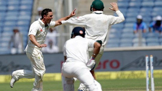 In the Australia tour of India in 2013, played in Hyderabad. Australia came out to bat first and the small partnership leads the Australian Team to a total of 237 runs. India was in good form and Murali Vijay came as an opener and smashed massive 167 runs and on the other side, Cheteshwar Pujara scored 204 runs and took India to a total of 503 runs. Australia on their second innings scored 131 runs and India won the match by an innings and 135 runs.